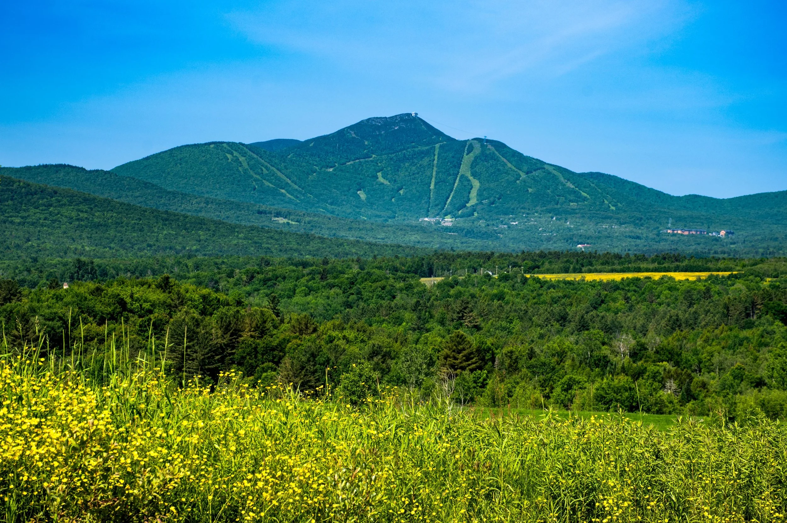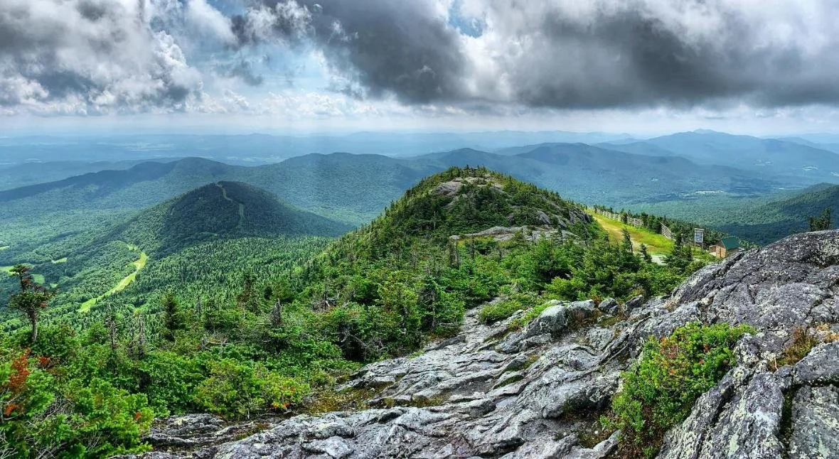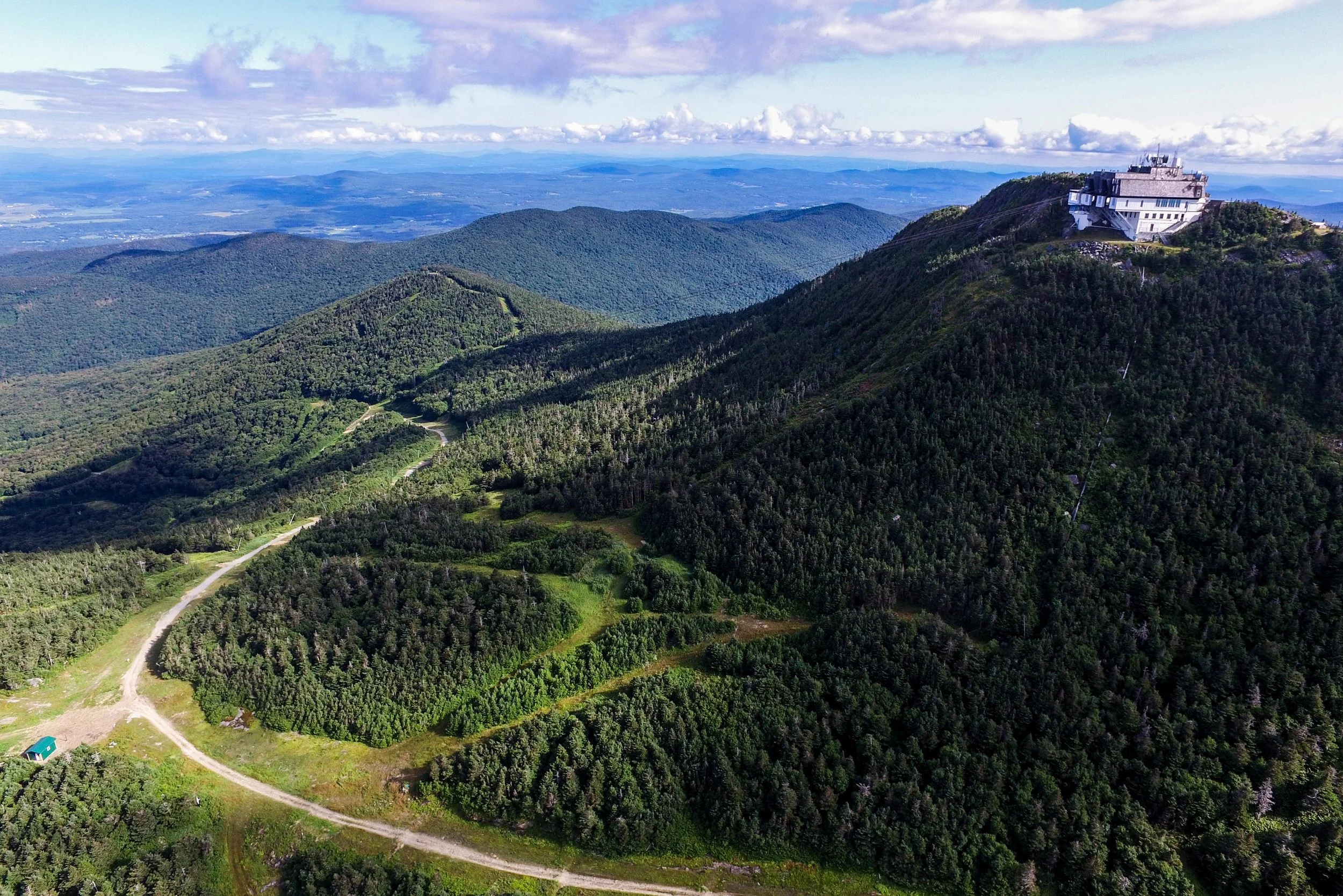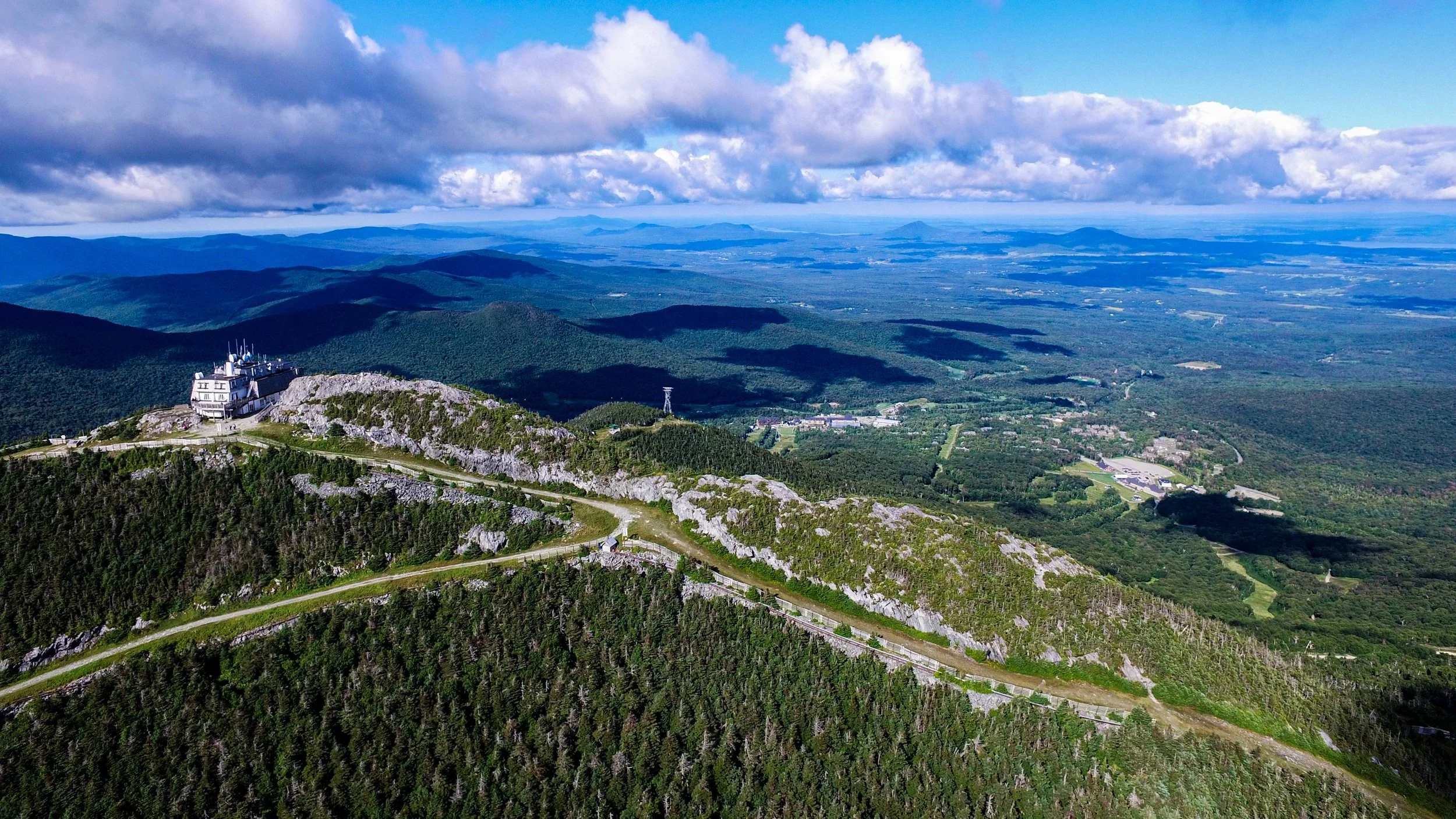 Climb Sweetheart to Paradise Meadows. Traverse Jet. Grind up Hotshot Derrick to the Stateside peak. Descend Montrealer to Angel’s Wiggle & onto Taxi Trail. That’s your rhythm section. At the end of Taxi, left turn uphill on Goat Run. It pitches up onto Upper River Quai under the Tram towers. Pass Bonaventure Quad. Descend Northway. Hard right onto Green Beret, steepest climb of the day. Briefly onto Vermonter, then right onto the Long Trail. Single track. No passing. Crest the ridge as you summit Jay Peak, take in the amazing 360 views.