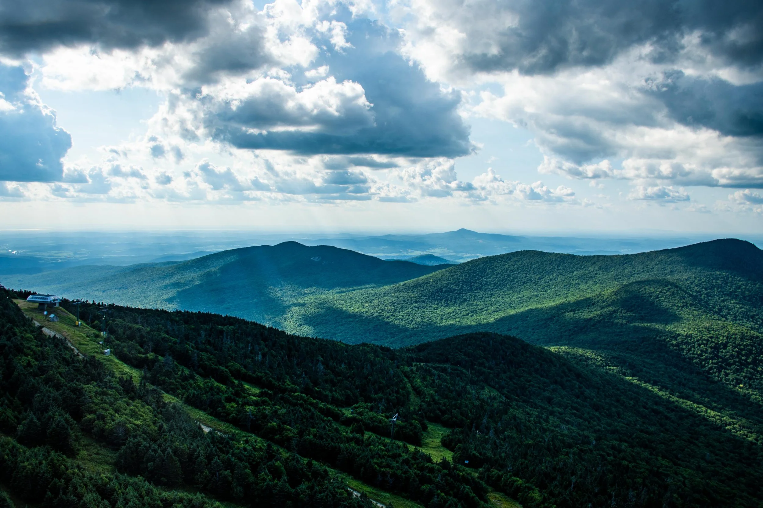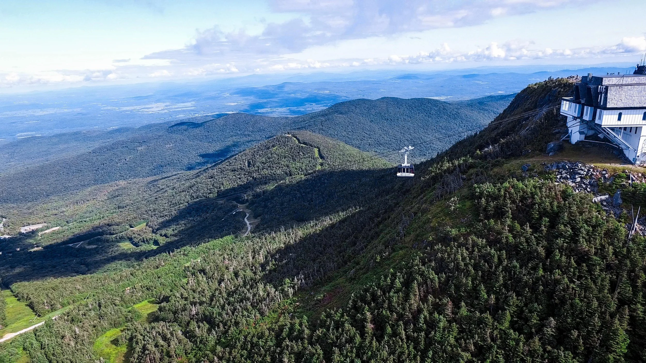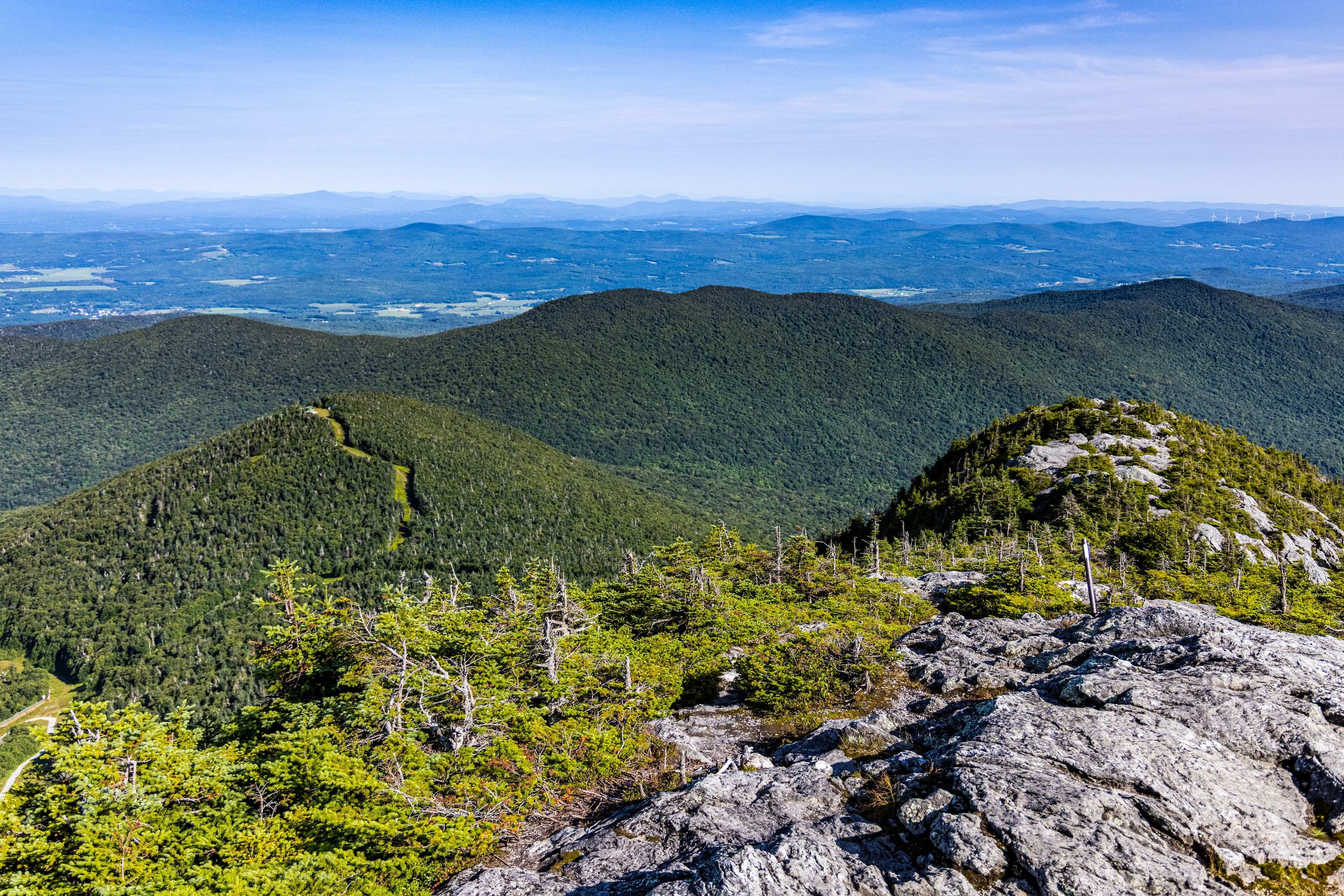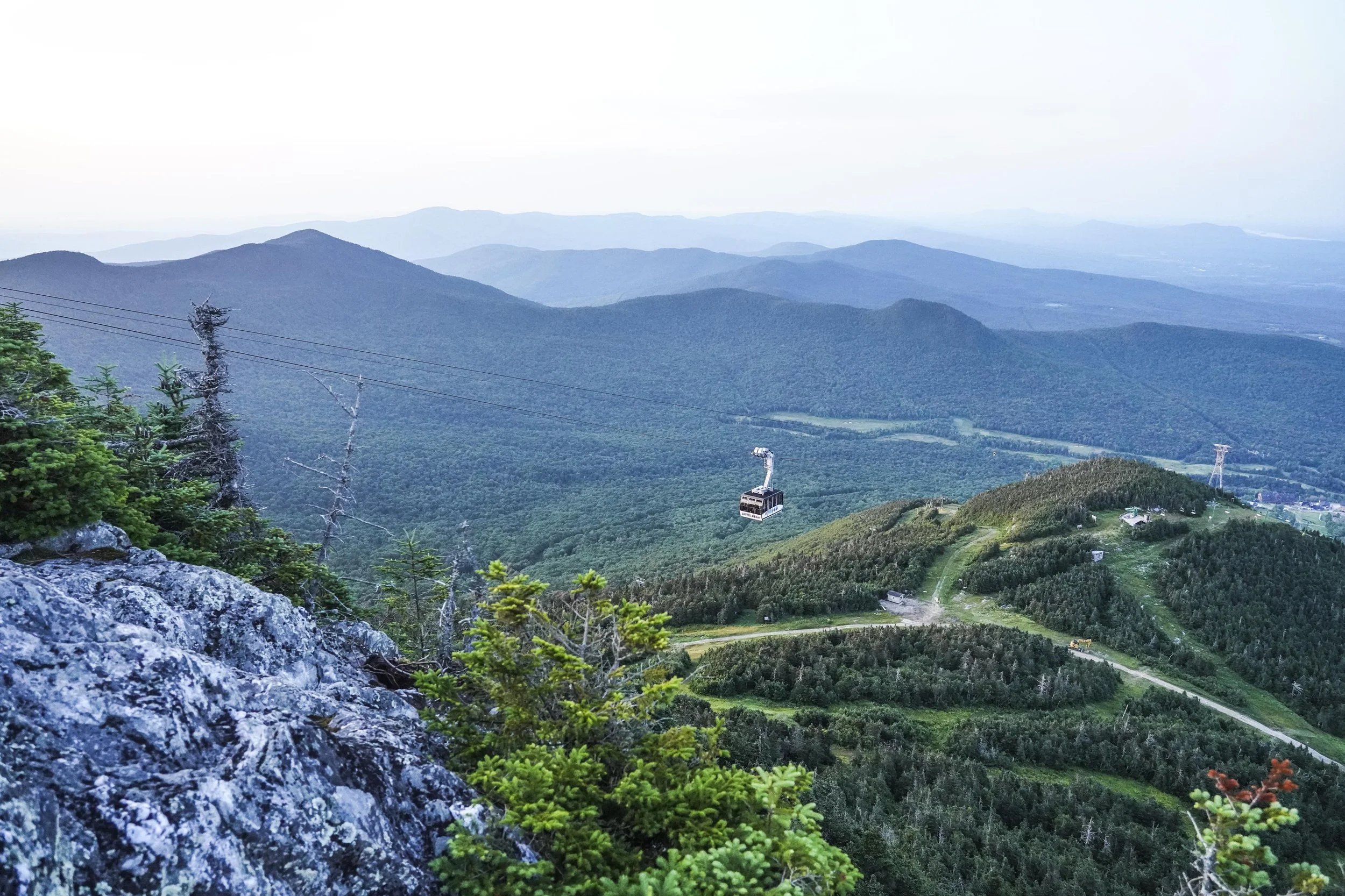 Climb Sweetheart to Paradise Meadows. Traverse Jet. Grind up Hotshot Derrick to the Stateside peak. Descend Montrealer to Angel’s Wiggle & onto Taxi Trail. That’s your rhythm section. At the end of Taxi, left turn uphill on Goat Run. It pitches up onto Upper River Quai under the Tram towers. Pass Bonaventure Quad. Descend Northway. Hard right onto Green Beret, steepest climb of the day. Briefly onto Vermonter, then right onto the Long Trail. Single track. No passing. Crest the ridge as you summit Jay Peak, take in the amazing 360 views.