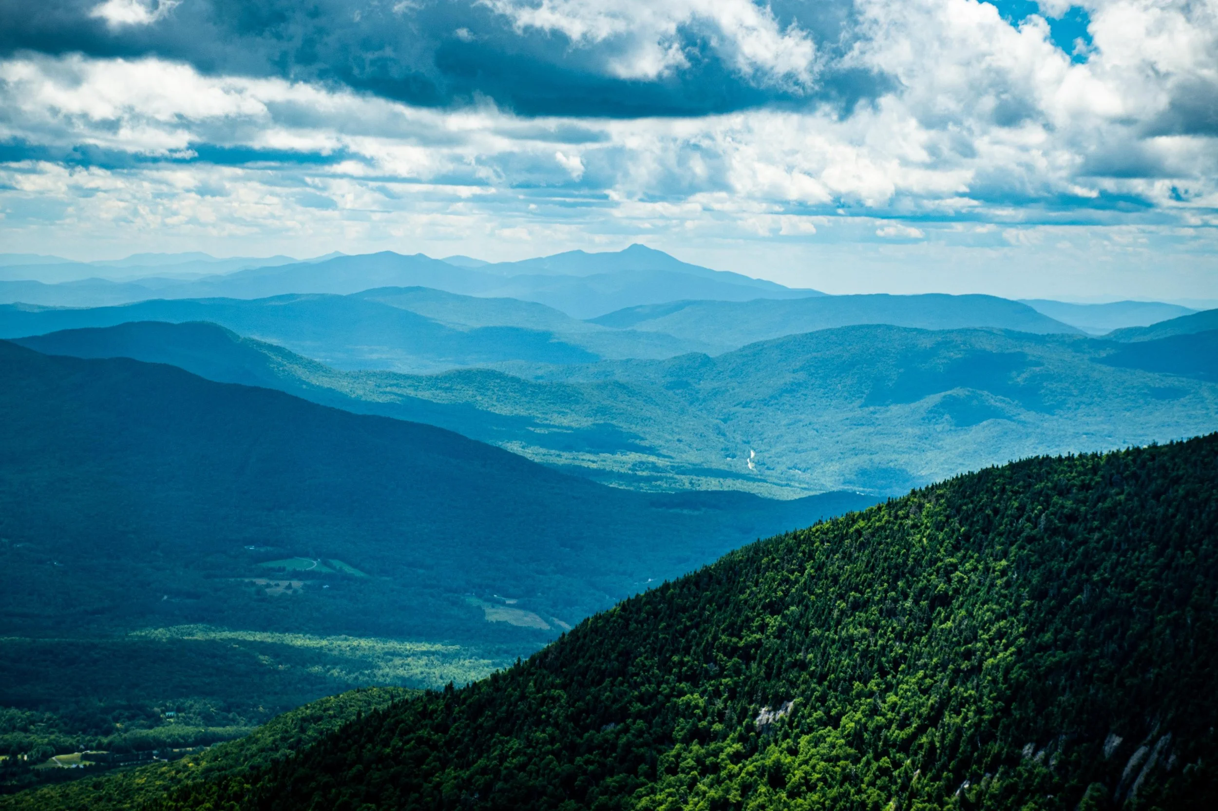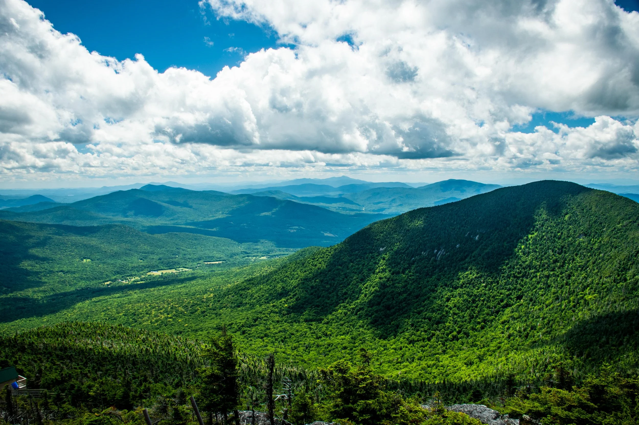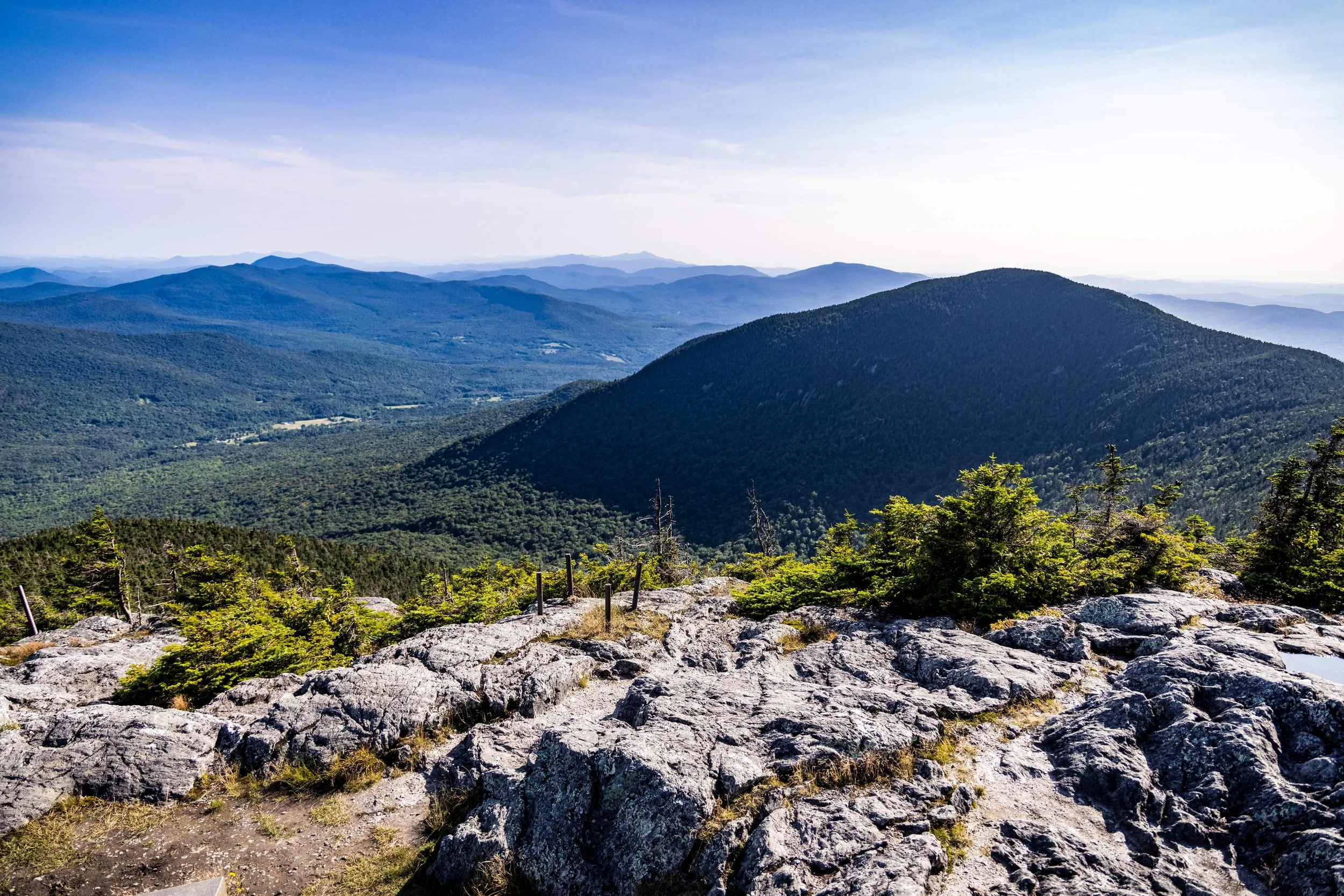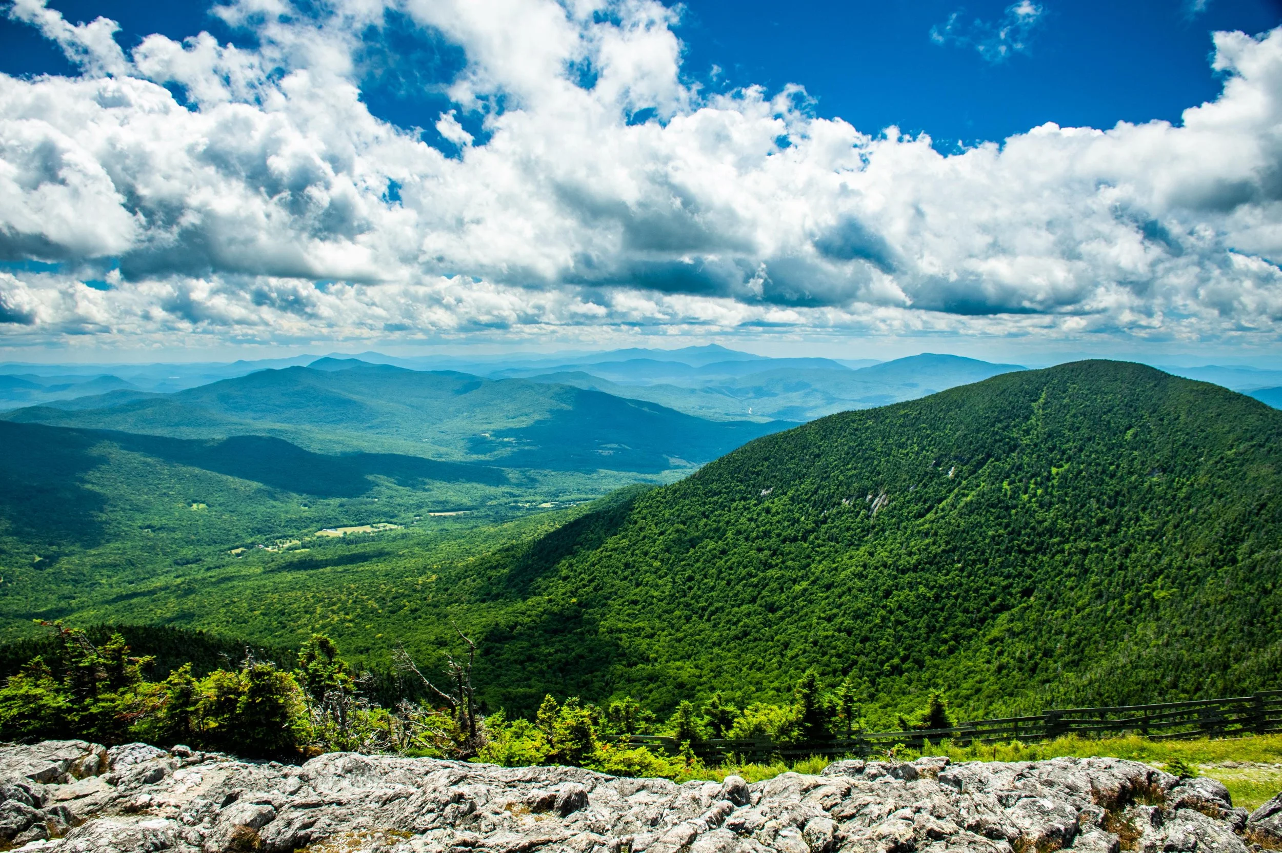 Climb Sweetheart to Paradise Meadows. Traverse Jet. Grind up Hotshot Derrick to the Stateside peak. Descend Montrealer to Angel’s Wiggle & onto Taxi Trail. That’s your rhythm section. At the end of Taxi, left turn uphill on Goat Run. It pitches up onto Upper River Quai under the Tram towers. Pass Bonaventure Quad. Descend Northway. Hard right onto Green Beret, steepest climb of the day. Briefly onto Vermonter, then right onto the Long Trail. Single track. No passing. Crest the ridge as you summit Jay Peak, take in the amazing 360 views.