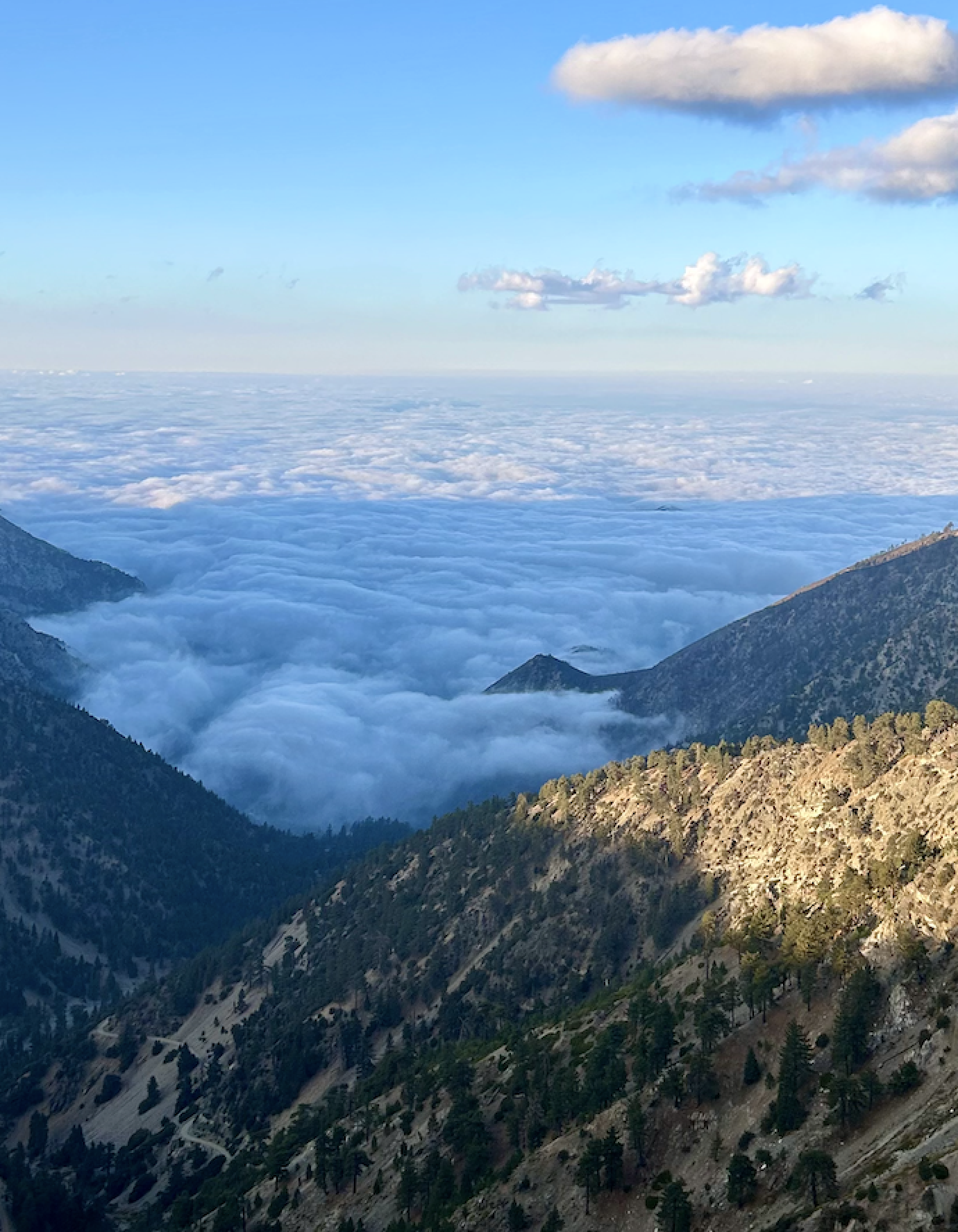 Upon reaching the Notch, runners transition onto the legendary Devil’s Backbone Trail — a dramatic ridgeline traverse known for its exposure and breathtaking sightlines. With steep drop-offs on either side, this section demands focus and sure footing as the summit block rises ahead with every step along the spine. The final push to the top of Mt. San Antonio is both grueling and inspiring. At 10,064 feet, runners are rewarded with sweeping panoramic views that can stretch from the Mojave Desert to the Pacific Ocean on clear days — a true summit in every sense.